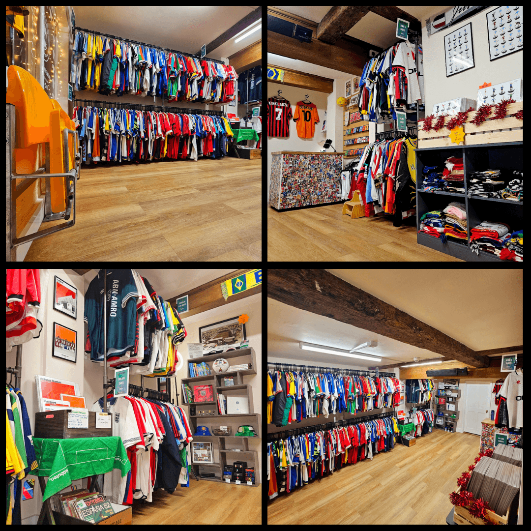 After years racing to emergencies across the East of England, Chris Cooper now races to car-boot sales, lofts, and WhatsApp groups hunting the crisp-collared gems of his childhood. What started as a few eBay sales to fund his own collection exploded post-Covid when the vintage shirt market went supernova. Fast-forward to December 2024 and Chris has just opened the doors to Football Finery’s first physical shop in Cambridge – a proper old-school football emporium where you can walk in, smell the fresh polyester, and talk Gazza, Gullit, and USA ’94 until closing time. This is nostalgia you can touch, authenticated by KitLegit, and served with a smile.